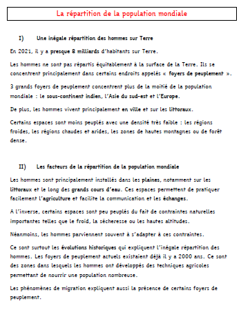 Une petite séquence de géographie assez classique à destination des 6èmes sur la répartition de la population mondiale.
