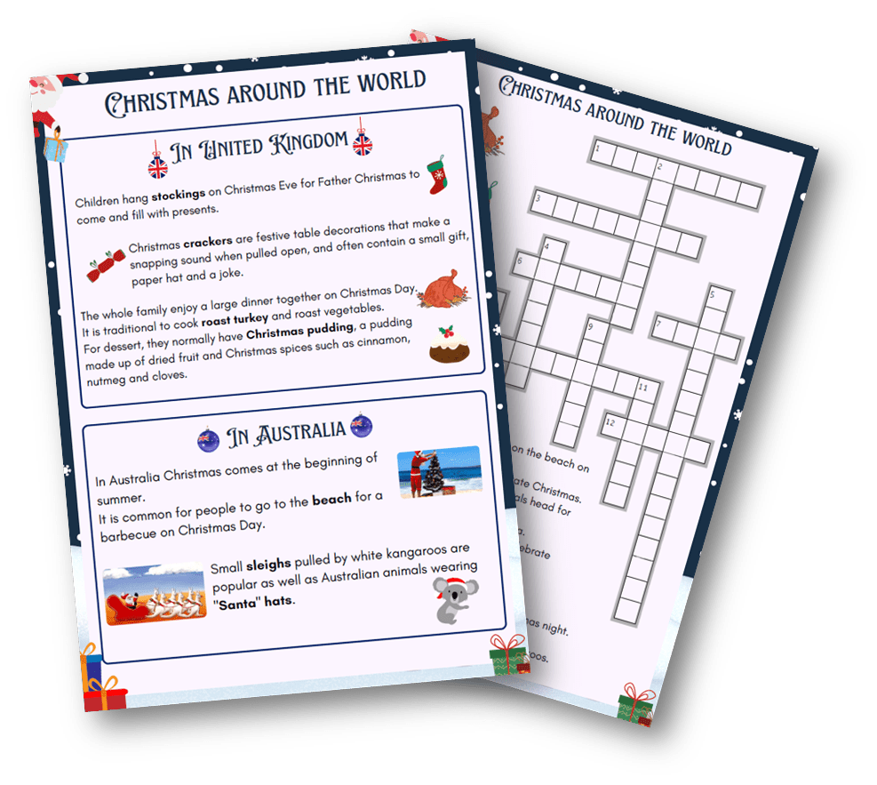 • Episode 6 : de 45’17 à 55’40 : Activité de comparaison des traditions de Noël au Royaume-Uni et en Australie