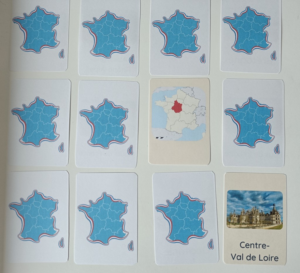 • Un petit jeu qui permet d’associer chaque nom de région à sa localisation. On peut y jouer soit sous forme de mémory soit sous forme de Mistigri (impression en recto-verso bord-court pour avoir le fond des cartes).